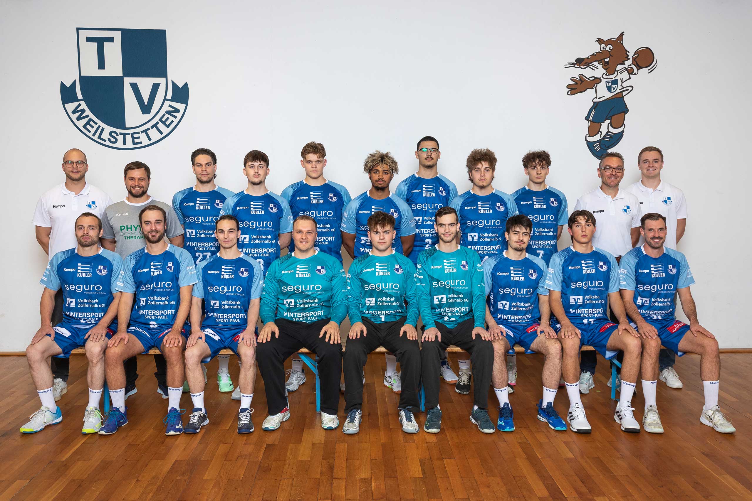 Hintere Reihe von links: Sportlicher Leiter Benjamin Kipp, Trainer Frank Lohner, Tim van Vught, Alexander Georg Mayer, Benjamin Majer, Leon Samba Buttkus, Alexandar Mojsiev, Maurice Schreyer, Gabriel Gerber, Abteilungsleiter Dietmar Kipp, Sportlicher Leiter Daniel Weckenmann
