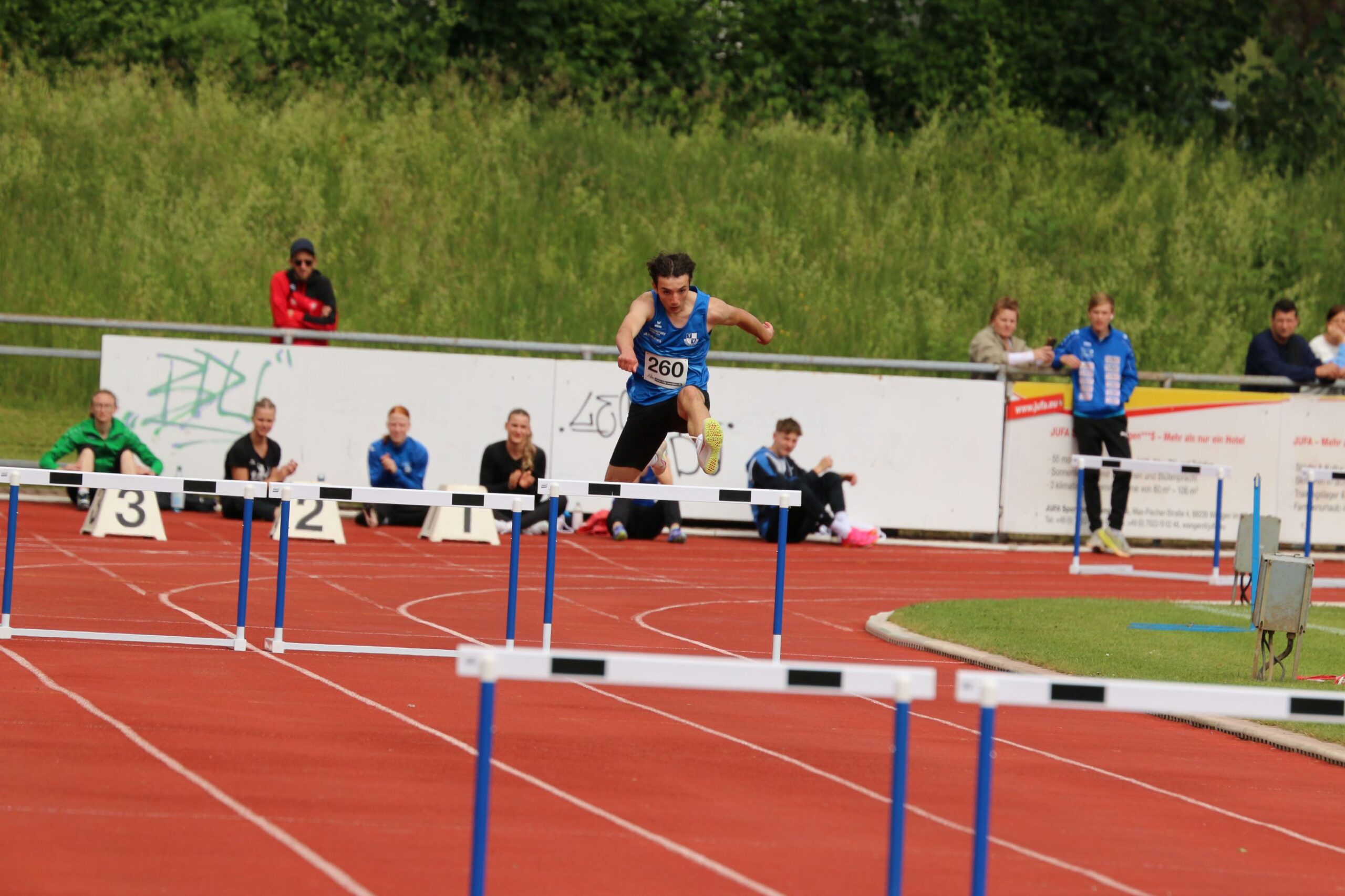 Sein erstes Rennen überhaupt bestritt Colin Hoch bei den U16m15 über 300m Hürden. In einem einsamen Rennen ging er von Anfang fokussiert an die Hürden und konnte bis zum Schluss gut durchziehen. In 43,32sec. sicherte er sich den Sieg und unterbot damit auch die Norm für die Deutschen Meisterschaften der U16. So konnte er befreit die 80m Hürden laufen und sicherte sich in guten 11,74sec. den Sieg.