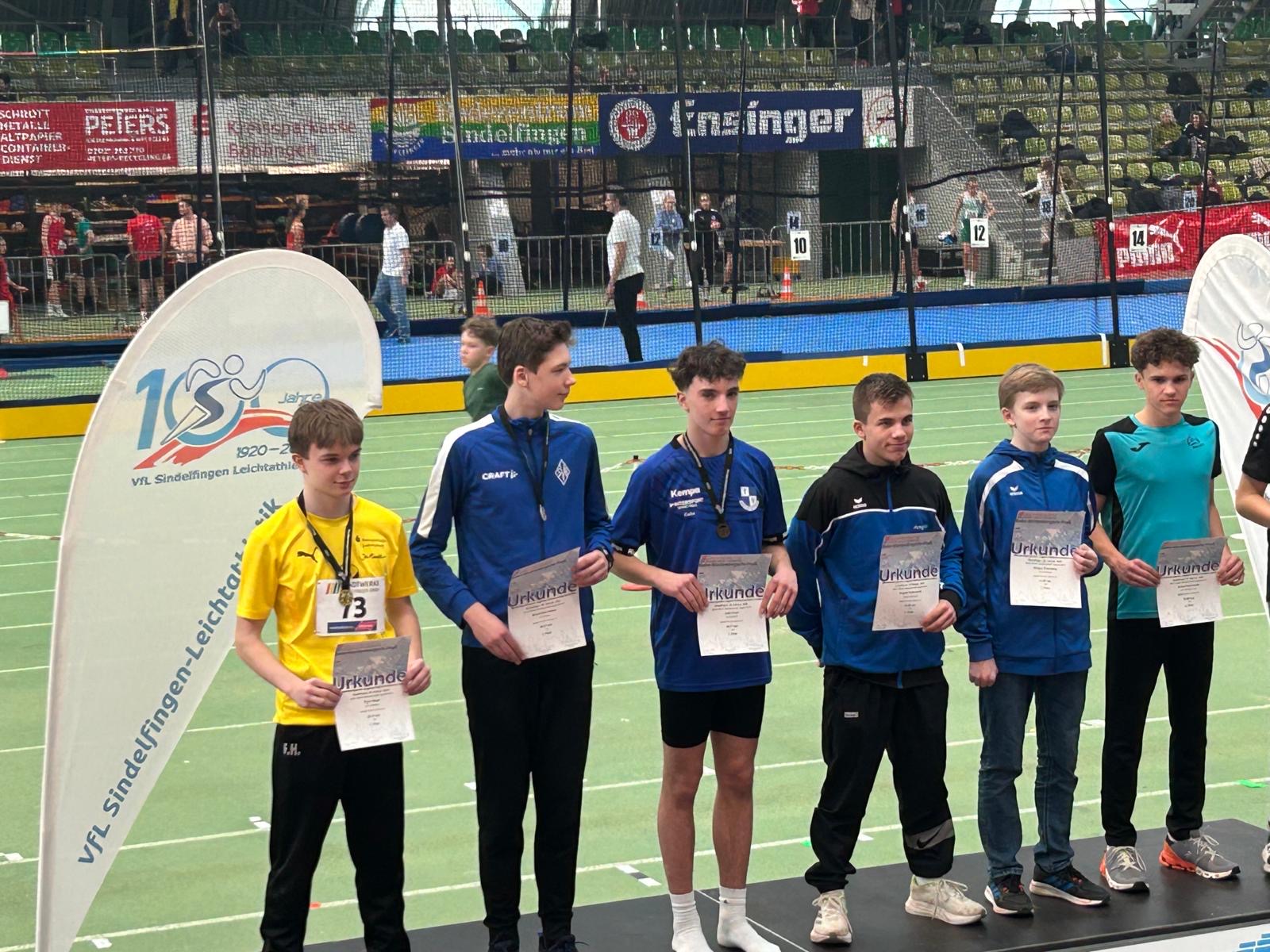 Am Sonntag 09.02.2025 fand der zweite Teil der württembergischen Hallenmeisterschaften der U16 im Glaspalast in Sindelfingen statt. Sowohl Colin Hoch bei den U16m15 über 300m sowie die 4x100m Staffel der wU16 konnten sich dafür qualifizieren.