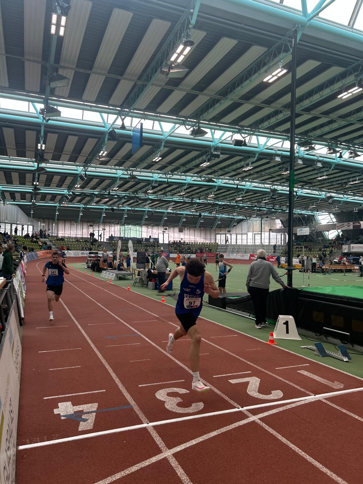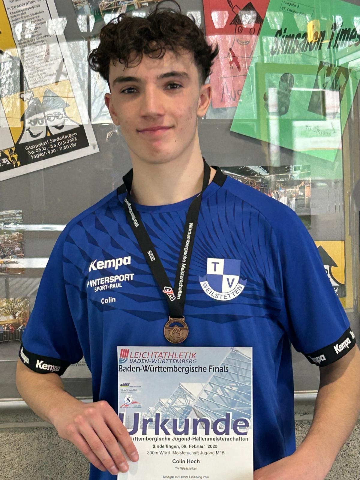 Colin Hoch lief im die 300m im ersten von drei Zeitläufen. Er ging etwas zu flott an und konnte das Tempo nicht ganz bis ins Ziel halten. Dennoch kam er in neuer Bestzeit von 40,71sec. als zweiter ins Ziel. Dies bedeutete in der Endabrechnung den sehr guten dritten Platz und damit verbunden die Bronzemedaille und ein schöner Erfolg für den jungen Läufer (vgl. auch lokale Presse, Ergebnisse 2025).
