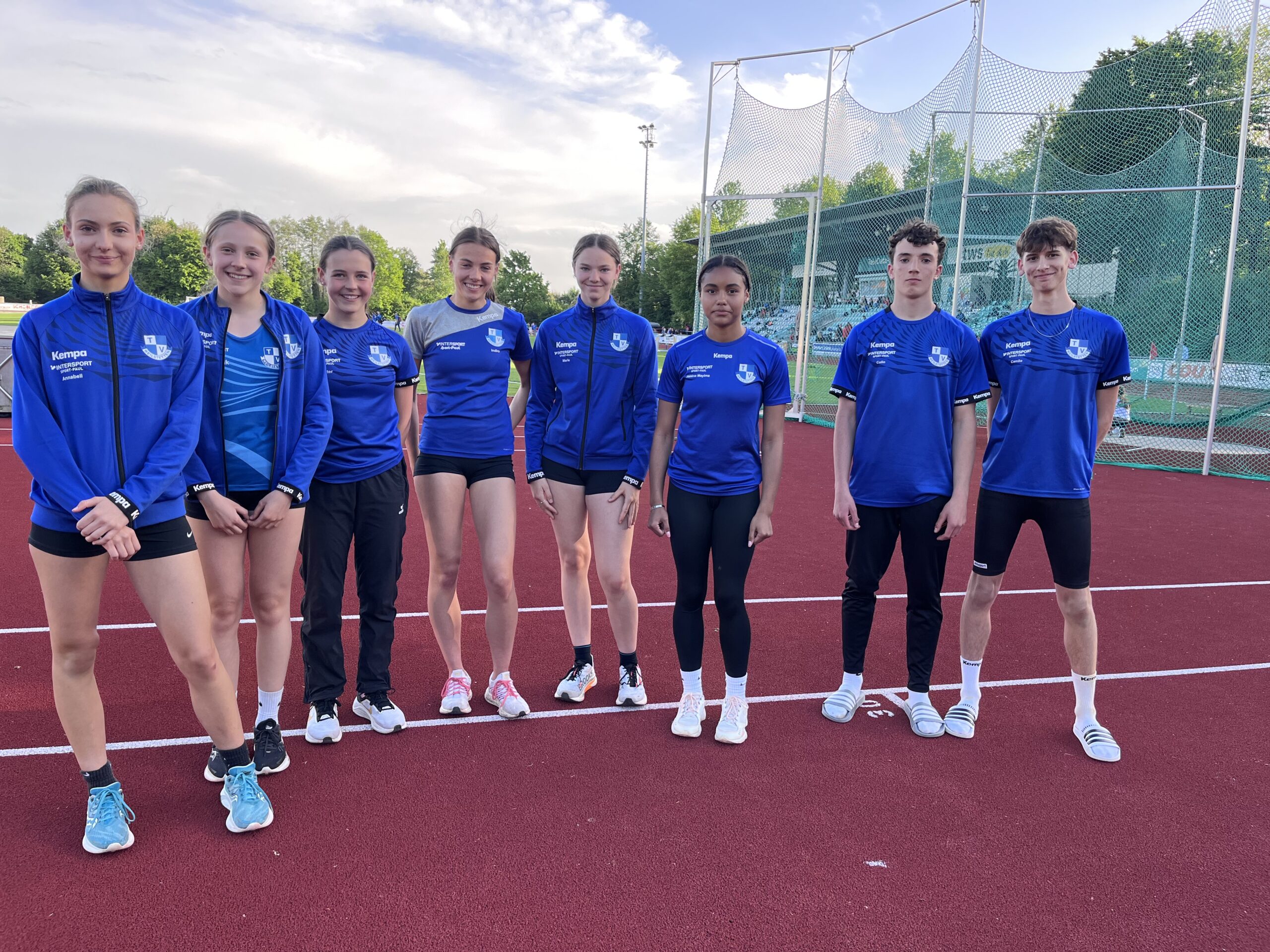 Helena Mayima, Marie Polster und Indira Strobel traten im Vierkampf der wU18 am Samstag an. Nach einem soliden Hürdenlauf mit 17,84sec. für Helena, 17,85sec. für Indira und 19,60sec. für Marie ging es zum Hochsprung. Dort riefen sie ihre Leistung ab. Marie sprang über 1,36m, Indira über 1,40m und Helena über 1,44m. Mit dieser guten Basis ging es zum Kugelstoßen. Das Einstoßen ließ gute Stöße erwarten. Helena verbesserte ihre Bestleistung auf gute 9,93m und Marie auf 8,11m. Indira blieb mit 8,73m etwas hinter den Erwartungen zurück. Im abschließenden 200m holten sie nochmals alles heraus. Marie lief 30,27sec., Helena 29,13sec. und Indira 28,13sec. In der Vierkampfwertung kam Helena mit 2.130 Punkten auf den 12. Platz, Indira mit 2.084 Punkten auf den 17. Platz und Marie mit 1.675 Punkten auf den 27. Platz. In de Mannschaftswertung kamen sie mit 5.889 Punkten auf den sechsten Platz.