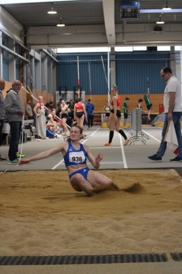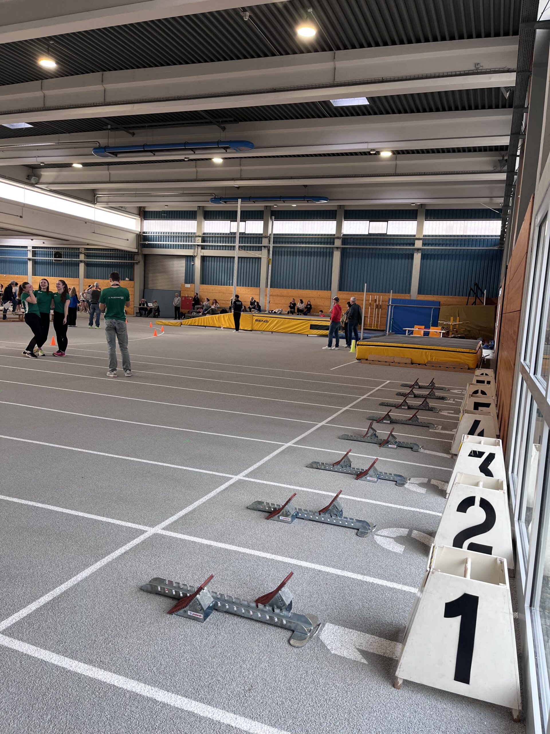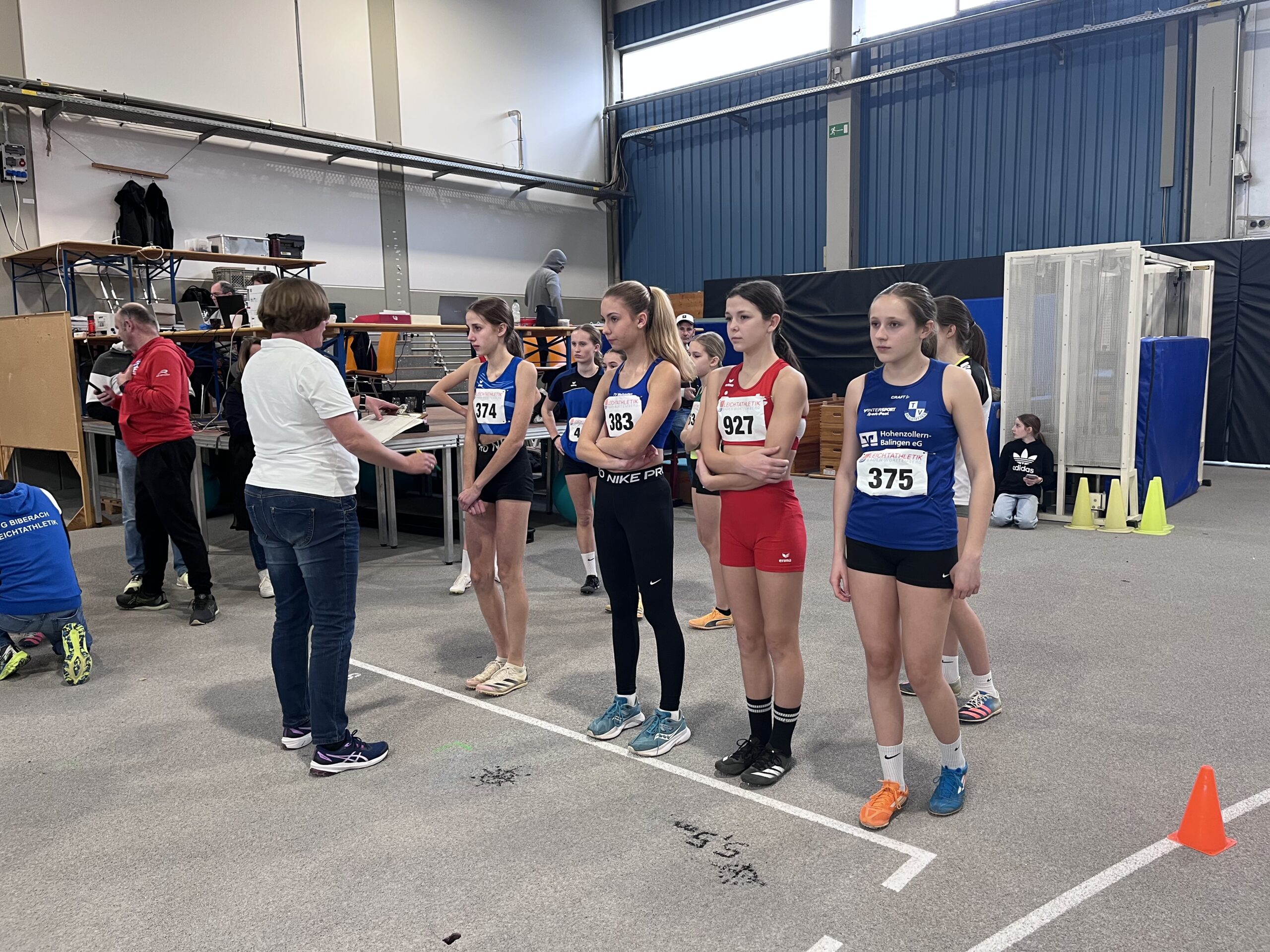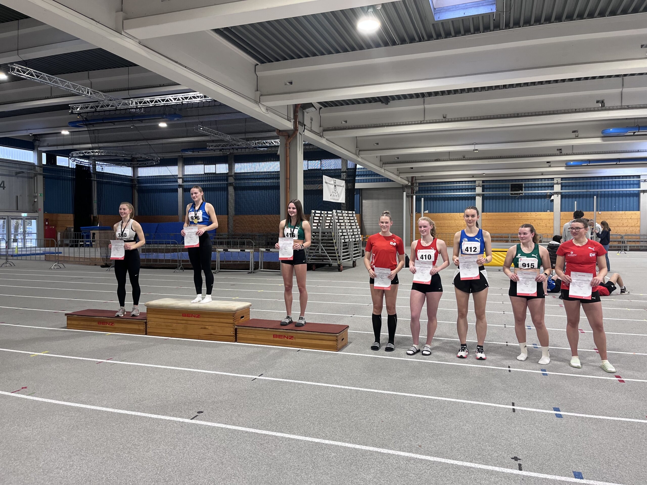 Am frühe Sonntagmorgen ging es für Marie Sautter, Annabell Butz und Lana Binder (alle U16w14) in ihrem ersten Mehrkampf unter dem Hallendach mit dem Kugelstoßen los. Gleich in ihrem erste Stoß verbesserte Marie ihre Bestleistung deutlich auf 10,07m und konnte sich im weiteren Verlauf noch weiter deutlich auf 10,30m und im letzten Durchgang sogar auf 10,66m steigern. Damit verließ sie den Kugelstoßring als zweitbeste Stoßerin im Feld. Auch Annabell und Lana machten ihre Sache sehr gut. Lana steigerte sich kontinuierlich im Wettbewerb und verbesserte im letzten Stoß mit 8,07m ihre Bestleistung. Somit war sie die fünftbeste im Feld gefolgt von Annabell. Auch sie verbesserte sich von Durchgang zu Durchgang und erzielte mit 7,97m eine neue Bestleistung. Mit dieser gutem Start ging es für die drei zum Hürdenlauf. Mit einem blitzsauberen Lauf sicherte sich Marie den Disziplinsieg mit neuer Bestzeit von 9,58sec. und schob sich im Zwischenklassement auf den ersten Platz nach vorne. Auch Lana lief als 10. in 11,02sec. und Annabell in 11,09sec. Bestzeit und unterstrichen den guten Start in den Hallenfünfkampf. Im anschließenden Hochsprung konnte Lana leider nicht die Einstiegshöhe überwinden. Dagegen konnten Marie und Annabell ihre Bestleistung aus dem Vorjahr mit 1,48m bzw. 1,40m einstellen. Marie war so die beste Springerin im Feld, Annabell die sechstbeste. Damit konnte Marie ihren Führung behaupten. Der Weitsprung stellte für die drei den ersten Wettkampf mit Brett und ohne Zone dar. Dazu hatten sie nicht viele Anlaufkontrolle im Training. Lana konnte nach einem guten ersten Satz mit 4,02m nicht nachlegen und musste sich damit zufrieden geben. Annabell traf das Brett gut, sprang aber nicht und so gab es nur dürftige 2,26m. Marie hatte einen ersten guten Versuch mit 4,38m und riskierte so in den folgenden Versuchen, übertrat die deutlich weiteren Sätze aber. Vor dem abschließenden 800m lag sie so an zweiter Stelle, Annabell und Lana im hinteren Mittelfeld. Im Lauf mobilisierten alle drei nochmals alle Kräfte, Annabell lief 3:11,66, Lana 2:59,62 und Marie 2:57,49. Damit feierte Marie ihren größten Erfolg in ihrer noch jungen Kariere und gewann mit sehr guten 2.463 Punkten die Silbermedaille. Annabell wurde mit 1.843 Punkten 13. und Lana mit 1.693 Punkten 16. unter 20. Mehrkämpferinnen. In der Mannschaftswertung belegten sie mit 5.999 Punkten den siebten Rang.