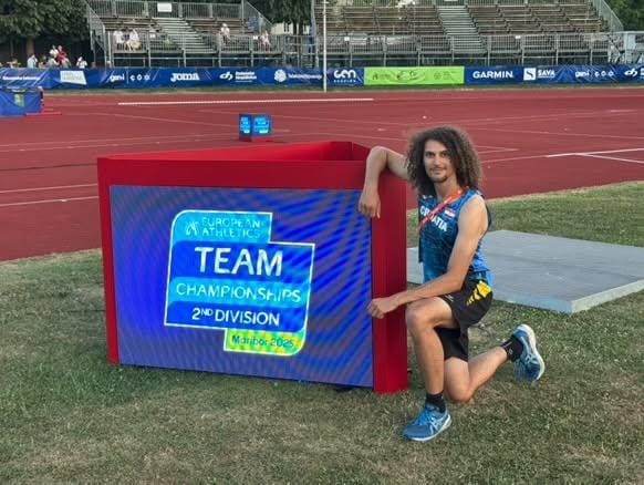 Die Team-EM im Leichtathletik wurde in der zweiten und dritten Division vom 24. bis 29.06.2025 im slowenischen Maribor ausgetragen. Obwohl Joshua Bozic vom TV Weilstetten derzeit der beste Dreispringer in Kroatien ist, durfte er auf Grund seines zweiten Platzes bei den Klubmeisterschaften nur als Ersatzmann zur Team-EM reisen. Los ging es für ihn am 26. mit dem Bus nach Maribor von Kroatien aus, wo sie sich zwei Tage vorbereitet hatten. In Maribor fanden die Wettkämpfe der zweiten Division an drei Tagen statt. Am Donnerstagabend konnten die Anlage getestet werden, um ein Gefühl für diese zu bekommen und sich auch entsprechend trotz Ersatz vorzubereiten. Die Wettkampftage verliefen mit dem Anfeuern der einzelnen Athleten von der Tribüne aus und für gute Stimmung zu sorgen. Am ersten Tag lief bei seinem Nationalteam nicht alles rund und es sortierte sich mit 143,5 Punkten auf dem elften Platz ein, gerade mal zehn Punkten Abstand zum Relegationsplatz. Der zweite Wettkampftag verlief deutlich besser mit vielen guten Platzierungen die ausreichend Punkte einbrachten, so dass es am Ende der achte Platz mit 308,5 Punkte wurde. Eine gute Erfahrung für Joshua, trotz nur als Ersatzmann. Höhepunkte waren die Atmosphäre im Stadion und die Dreisprungikone Christian Tyler zu treffen. Und bei der U23 EM in ein paar Wochen geht es dann für sein Land an den Start.