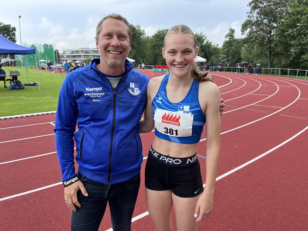 hoch, aber sie blieb nur 4cm unter ihrem Bestwert. Damit konnte sie ihren sechsten Zwischenrang bestätigen und lag auf Bestleistungskurs. Leider lief im anschließenden Kugelstoßen nicht viel zusammen und sie musste sich mit 11,29m zufrieden geben, über einen Meter hinter ihren normalen Weiten. Mit diesem Rückschlag verlor sie auch einen Platz und ging so in den abschließenden 200m-Lauf des ersten Tages. Es regnete nicht, war aber kühl. Nach einem sehr guten Start und ersten 80m ging etwas die Kraft aus und sie kam in mäßigen 26,62sec. ins Ziel, bedingt auch durch die dreiwöchige Krankheitspause im April. Trotz dieses Rückschlages schloss sie den ersten Tag mit 2.988 Punkten auf Platz acht ab, nur knapp hinter ihrer bisherigen Bestleistung. Dazu kam noch der Regionalmeistertitel im Vierkampf.