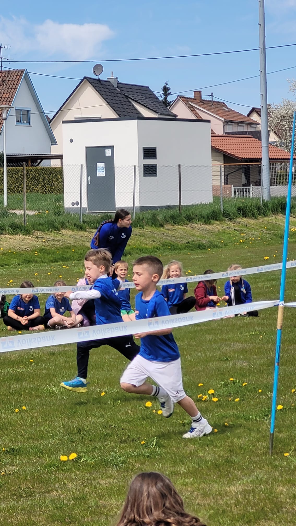 Die U8 vom TV Weilstetten ging mit Tiara Kienzle, Till Kislat, Mats Eppler, Jakob Leibold, Emma Leibold, Carlo Erlacher, Annika Hodler, Luisa Hodler, Ida Lohmüller, Franz Herrnamm und Lara Wild. Sie schlugen sich im Feld der sieben antretenden Mannschaften gut und holten sich den fünften Platz, was in der Kreiswertung Platz vier bedeutete. Gewonnen hat der TB Tailfingen und die LG Steinlach-Zollern.
