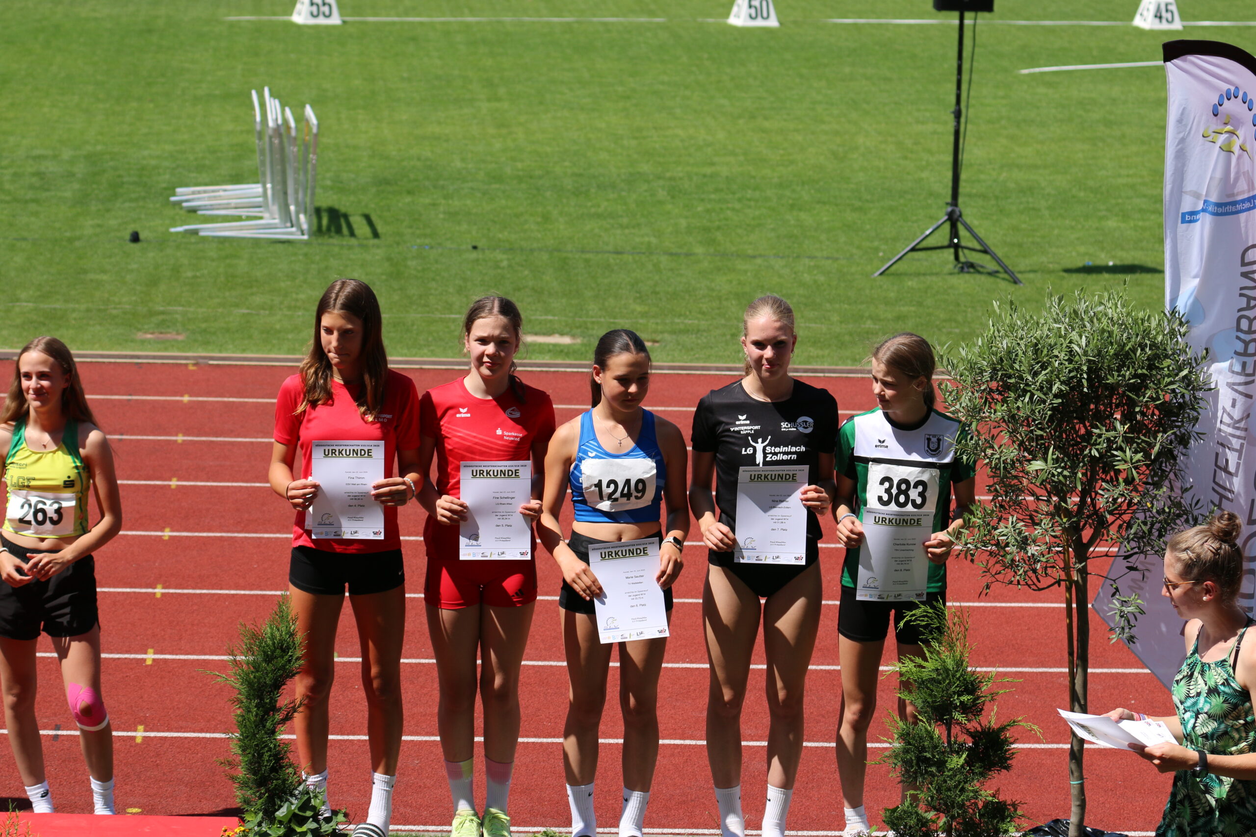 Am Samstag 21. und Sonntag 22.06.2025 fanden die süddeutschen Meisterschaften der U16 / U23 im Kandel in der Pfalz statt. Erfreulicherweise konnten sich vier Athleten vom TV Weilstetten qualifizieren, Marie Sautter (U16w14 80m Hürden, Hochsprung, Kugelstoßen, Speer), Simon Helber (U16m14 800m), Colin Hoch (U16m15 100m, 80m Hürden, 300m Hürden und Joshua Bozic (U23 Dreisprung). Bei hochsommerlichen Bedingungen schlugen sich alle wacker und zeigten gute Leistungen. Sie brachten eine Silber- und eine Bronze-Medaille mit nach Hause.