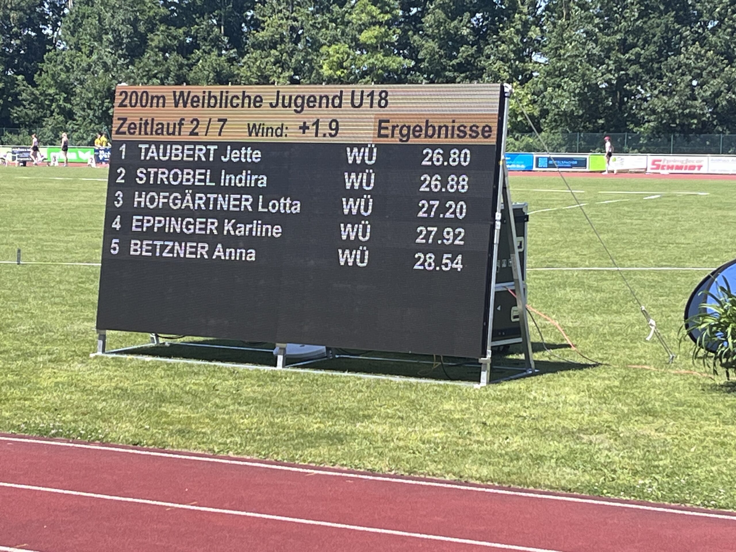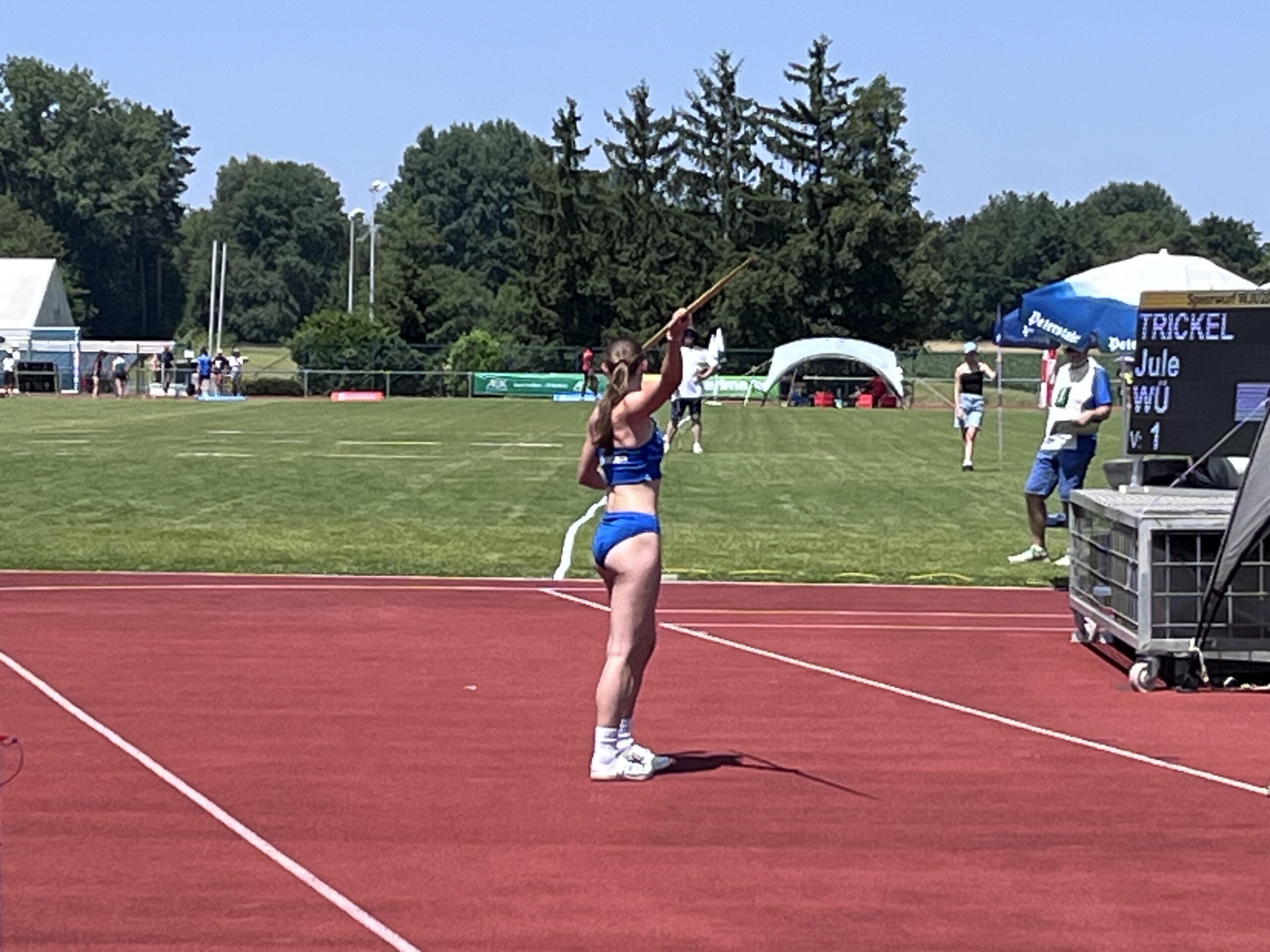 Am Samstag 21. und Sonntag 22.06.2025 fanden die Baden-Württembergischen Meisterschaften der U18 / U20 im badischen Langensteinbach (Karlsbad) statt. Erfreulicherweise konnten sich fünf Athleten vom TV Weilstetten dafür qualifizieren, Indira Strobel (wU18 200m, Dreisprung), Claudia Narr (wU18 800m), Camilo Arroyo Vogt (mU18 Hochsprung), Staffel der wU18, Jule Trickel (wU20 100m, 200m, 800m, 100m Hürden, Hochsprung, Kugelstoßen, Speerwurf) und Jannis Gartmann (100m, 200m, 400m, 10m Hürden, 400m Hürden, Hochsprung). Claudia Narr musste aus terminlichen Gründen ihren Start absagen sowie Jannis Gartmann auf Grund einer Verletzung. Auf Grund des Zeitplanes entschied sich Jule Trickel für einen Start am Samstag über 100m und Kugel und am Sonntag über 100m Hürden und Speerwurf. Bei hochsommerlichen Bedingungen schlugen sich alle sehr gut und zeigten gute Leistungen und konnte auch ihre Vorleistungen bestätigen sowie zahlreche Bestleistungen aufstellen. Und sie brachten auch eine Silbermedaille sowie zwei vierte Plätze mit nach Weilstetten.