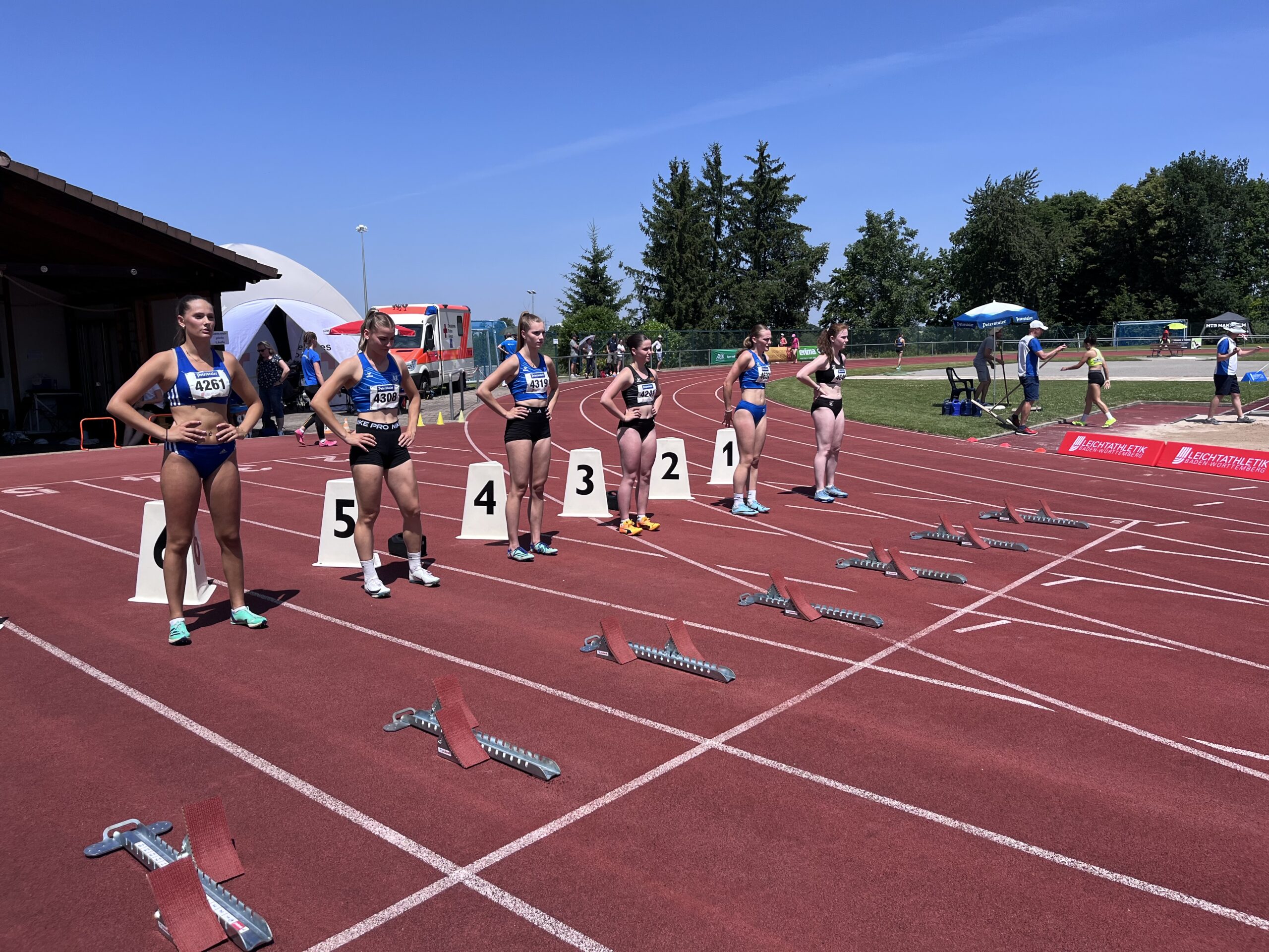 Am Samstag ging es für Jule zunächst über die 100m, bei denen 14 Läuferinnen antraten. Sie startete im zweiten von drei Vorläufen. Nach einem guten Start und einer guten Beschleunigungsphase musste sie auf den letzten Metern etwas abreißen lassen, kam aber in guten 12,74sec. ins Zeil und bestätigte ihre Vorleistung. Mit der siebtbesten Zeit im Feld qualifizierte sie sich für den B-Endlauf, auf den sie aber auf Grund des Kugelstoßen verzichtete. Dort zeigte sie eine konstanten Serie über 10 Meter und verbesserte ihre Bestleistung im zweiten Versuch auf 10,88m , die sie erneut im letzten Versuch auf gute 11,04m steigern konnte. Damit belegte sie den guten vierten Platz. Am Sonntag ging es dann für zehn Hürdenläuferinnen in zwei Vorläufen um den Einzug ins Finale. Jule lief im ersten Vorlauf. Nach einem guten Start kam sie teas aus dem Rhythmus und kam dann wieder besser ins Rennen. Mit neuer Bestleistung von 14,49sec. sicherte sie sich als dritte im Lauf und mit der insgesamt viertbesten Zeit sicher das Ticket für den Endlauf. Vor dem Endlauf ging es noch zum Speerwurf. Nach einem lockeren dosierten Einwerfen verbesserte sie gleich im ersten Wurf ihre Bestleistung auf 37,66m. Nach einem schwächeren zweiten Wurf bestätigte sie mit 37,38m und 36,33m ihre Weite. Doch dann konnte sie diese sogar im fünften Wurf nochmals auf tolle 38,75m steigern und ließ im letzten Wurf 38,69m folgen. Mit dieser guten Leistung belegte sie den tollen Silberrang. Nach ihrem letzten Wurf musste sie sofort zum Endlauf über die Hürden, der in zehn Minuten anstand. Leider erwischte sie keinen idealen Start, konnte aber nach der ersten Hürden mehr Druck aufbauen und erneut ihre Bestzeit und damit auch ihren Vereinsrekord auf 14,35sec. verbessern. Damit belegte sie den guten vierten Platz (vgl. lokale Presse, Ergebnisse 2025).
