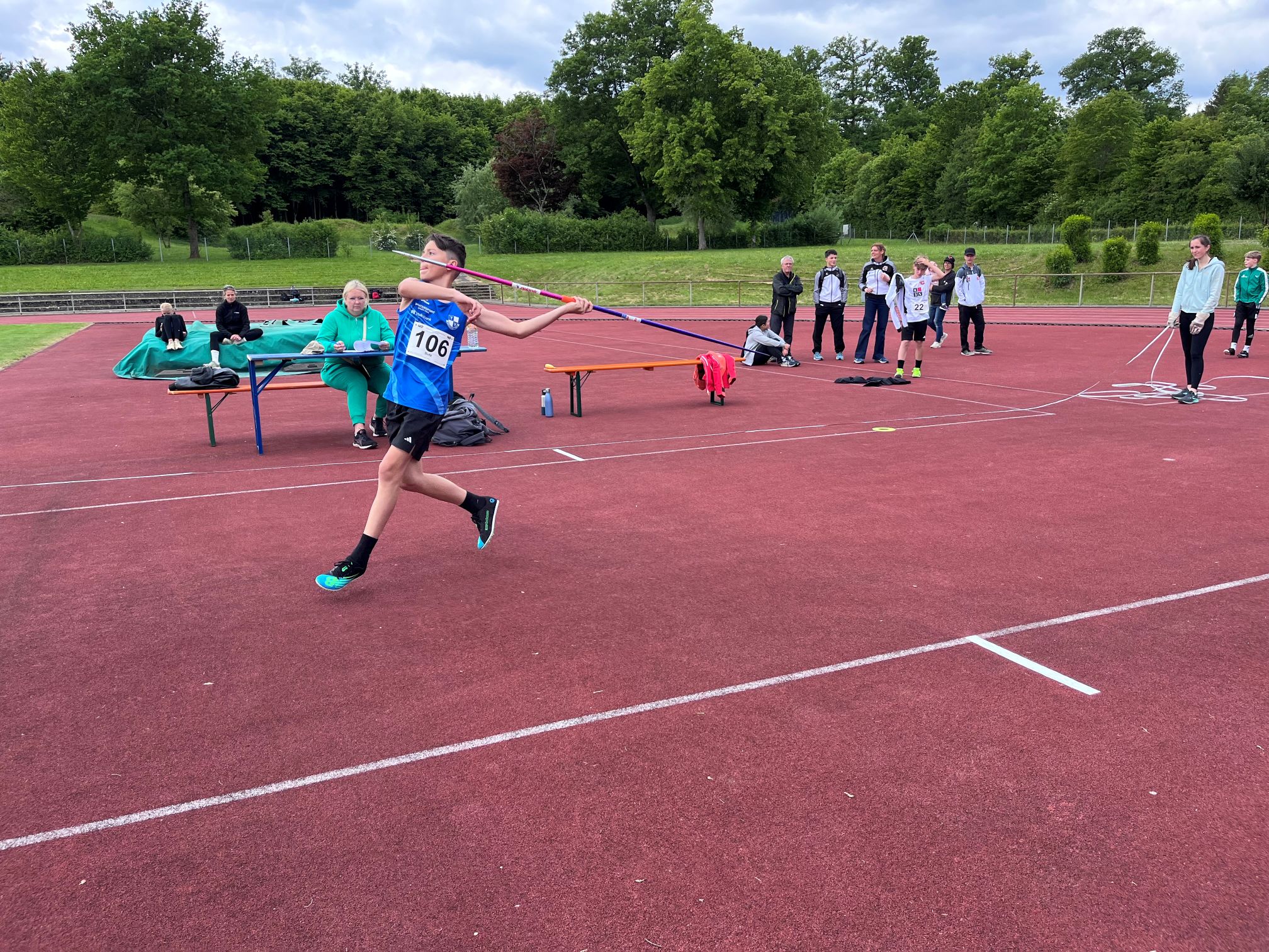 Laurenz Butz konnte sich im Speerwettkampf kontinuierlich steigern und mit 27,31m im fünften Versuch eine neue Bestweite erzielen und sich so auch den Titel bei den U14m12 sichern. Julian Sonnenfroh zeigte im Speerwerfen der U14m13 eine gute Serie und warf im letzten Versuch neue Bestweite mit 28,06m und verpasste nur knapp das Podium mit Platz vier.