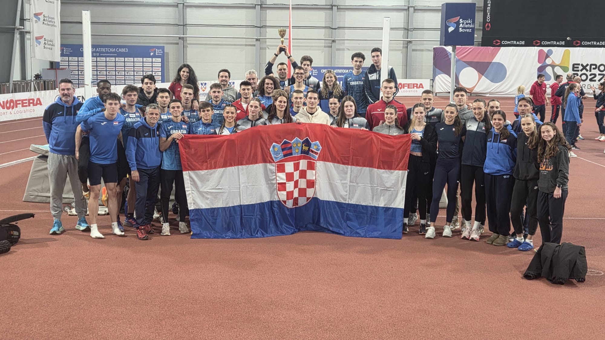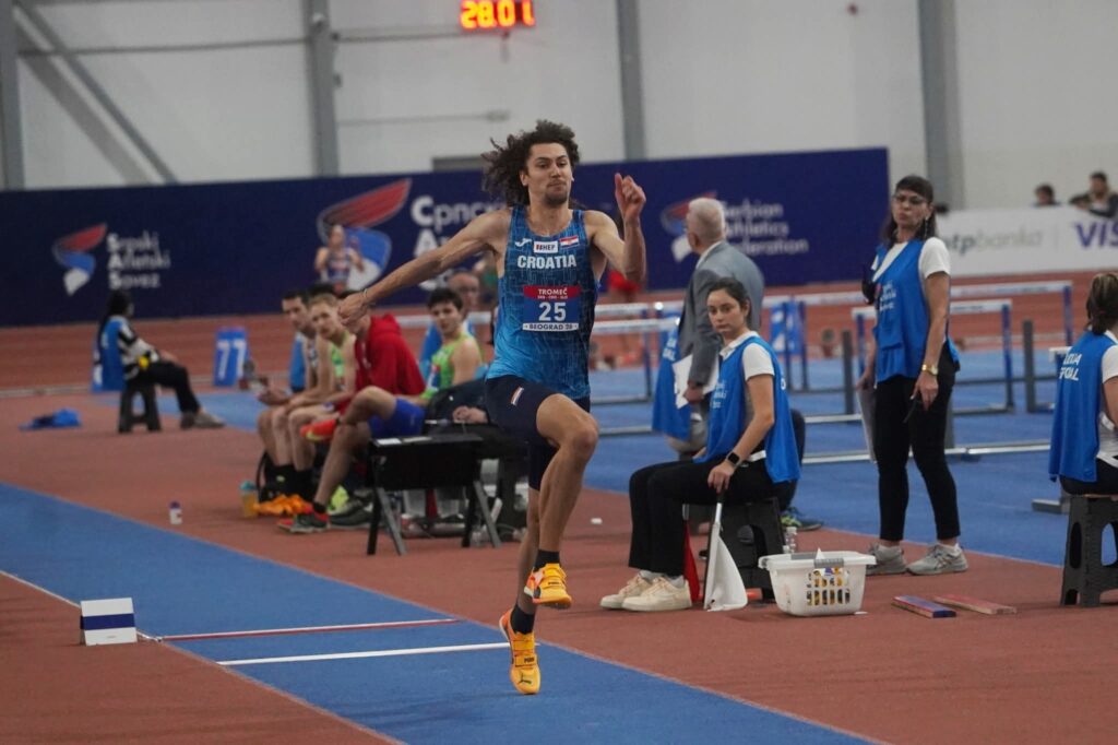 Aufgrund der sehr weiten Anreise reiste Joshua bereits am Montag nach Zagreb und von dort aus am Dienstagmorgen mit der Mannschaft nach Belgrad. Beim Wettkampf ist er mutig gleich von Anfang an aufs Brett gelaufen, verpasst im ersten Sprung den Moment sich zu treffen und musste durchlaufen. Dafür sprang er im zweiten Versuch 14,80m, was zu diesem Zeitpunkt Platz 3 bedeutete. So ging er fokussiert in den dritten Versuch und das mit Erfolg. Er schob sich mit einer Weite von 15,13m auf Platz 1. Leider folgten auf diesen Versuch ein ungültiger Versuch und zwei schlechtere Sprünge. Zum Schluss war es dann der zweite Platz und fünf wertvolle Punkte für die Mannschaftswertung (vgl. auch lokale Presse, Ergebnisse 2026).