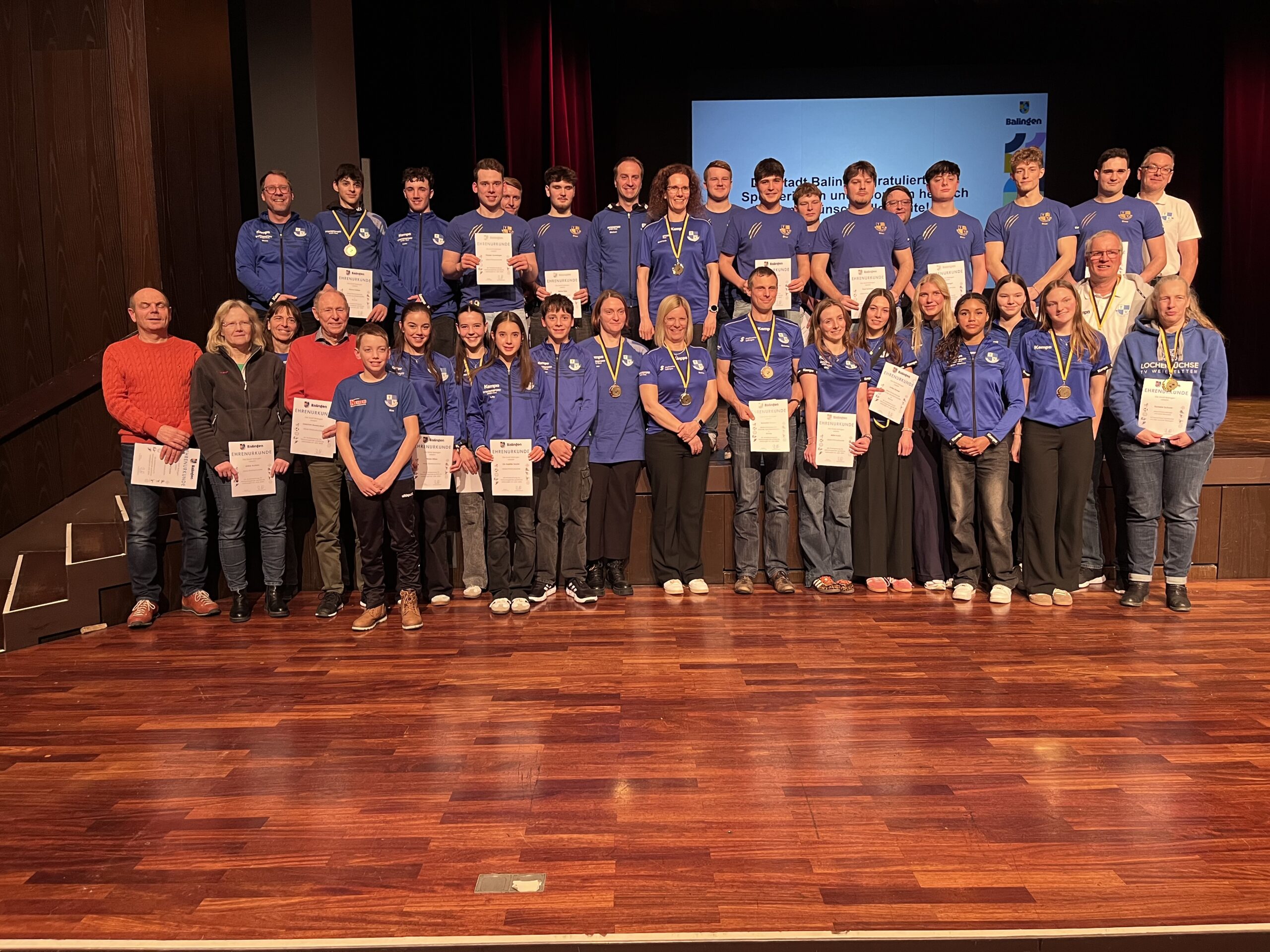 Am Montag 26.01.2026 führte die Stadt Balingen ihre Sportlerehrung für 2025 durch, bei der über 300 erfolgreiche Sportlerinnen und Sportler in verschiedenen Sportarten in Balingen für deren Einzel- und Mannschaftsleistungen von der Regionaleben über die Landesebene bis hin zur Bundesebene geehrt wurden.
