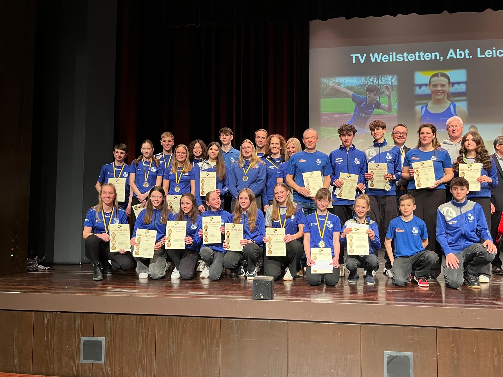 Von den Leichtathleten wurden Camilo Arroyo Vogt, Joshua Bozic, Jannis Gartmann, Colin Hoch und Jule Trickel für ihre tollen Erfolge auf Bundes- und Landesebene mit der Sportlermedaille in Silber geehrt. Für Erfolge auf Regionaleben wurden mit einer Urkunde Gabriel Bozic, Anna-Lena Hug, Marie Sautter, Julian Sonnenfroh, Joana Venditti und Simon Helber geehrt sowie die Blockmehrkampfmannschaft der wU14 mit Mara Alber, Annabell Butz und Marie Sautter sowie die Staffel der wU14 mit Lana Binder, Annabell Butz, marie Sautter und Emma Baummann.